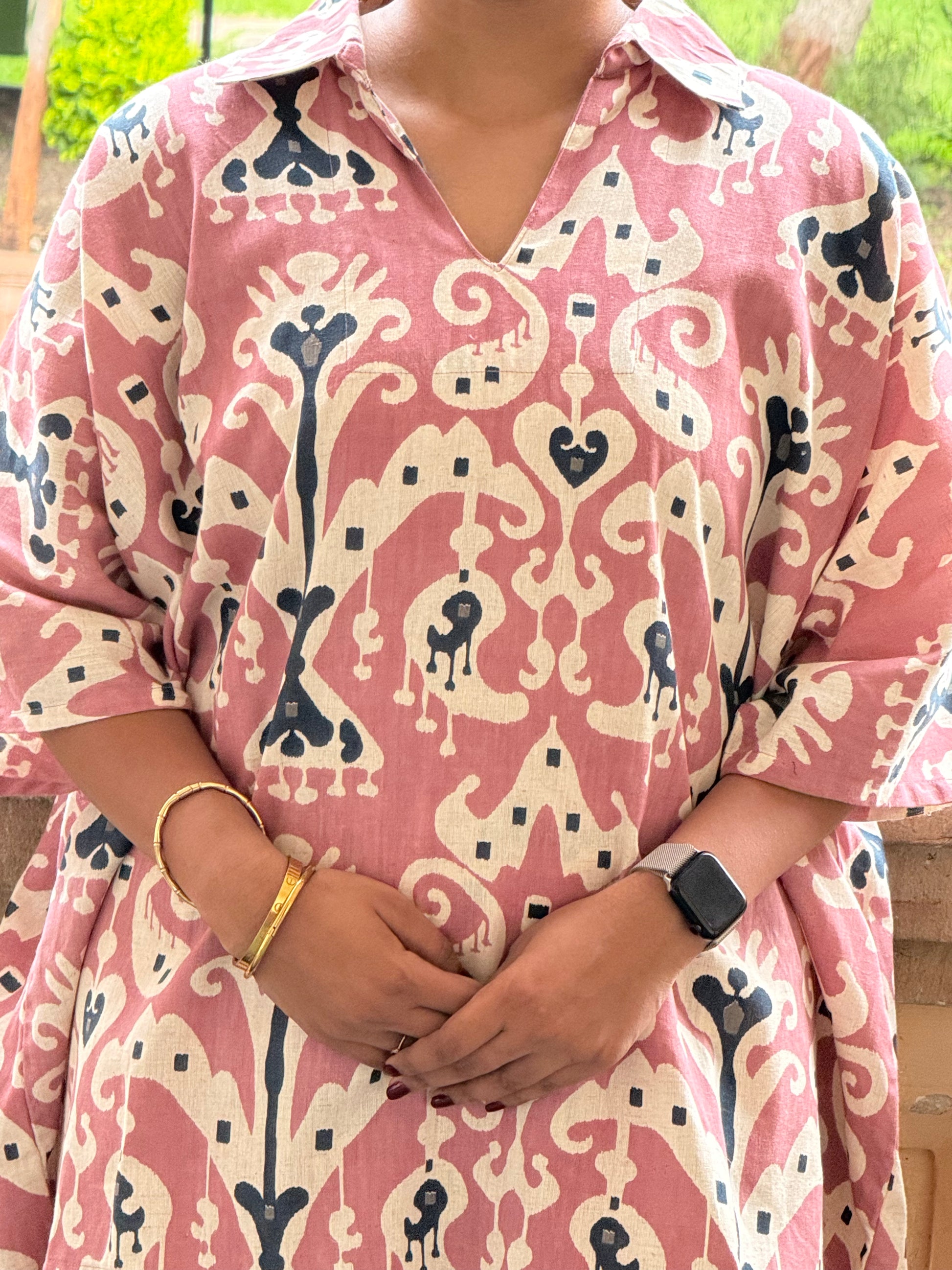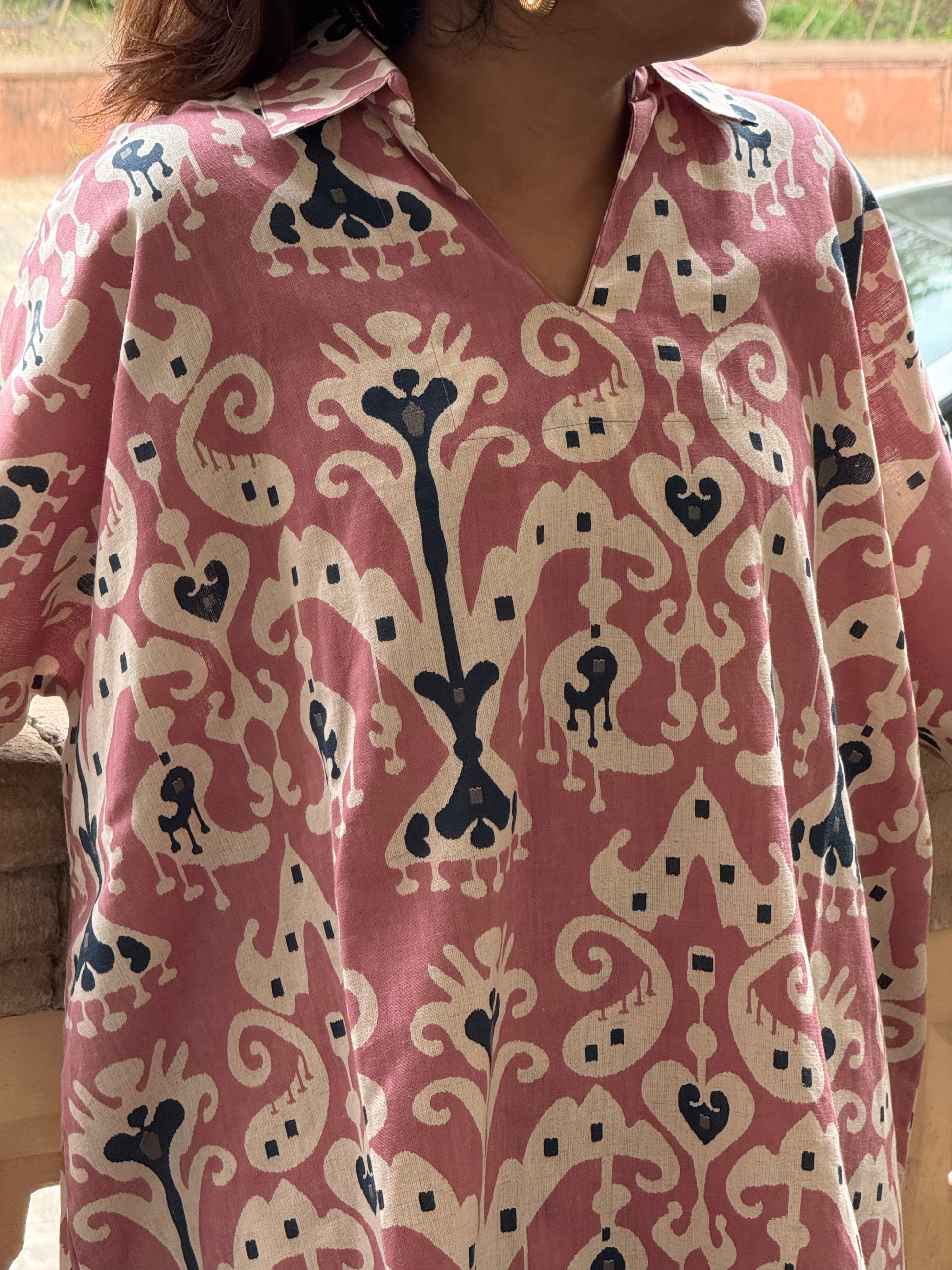 Bebaak, meaning fearless or unfiltered, is an oversized cotton khadi co-ord set designed for freedom. Tailored in a dusty rose hue, it’s soft in color but strong in presence, just like the women who wear it. Crafted in a breathable cotton khadi blend, the set features a loose-fit top with dramatic above-elbow sleeves, paired with pocketed palazzos for everyday utility. With its relaxed silhouette and earthy charm.