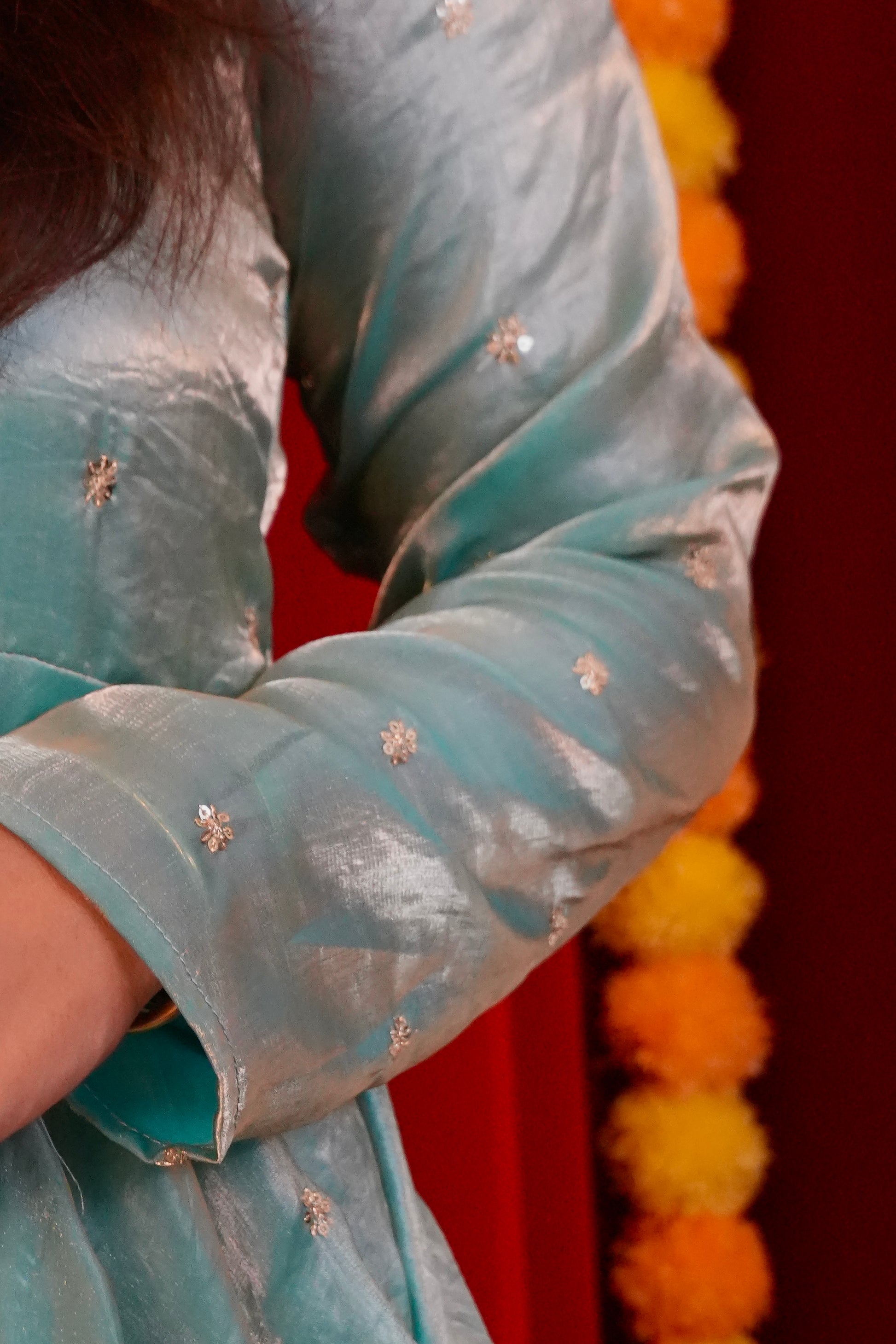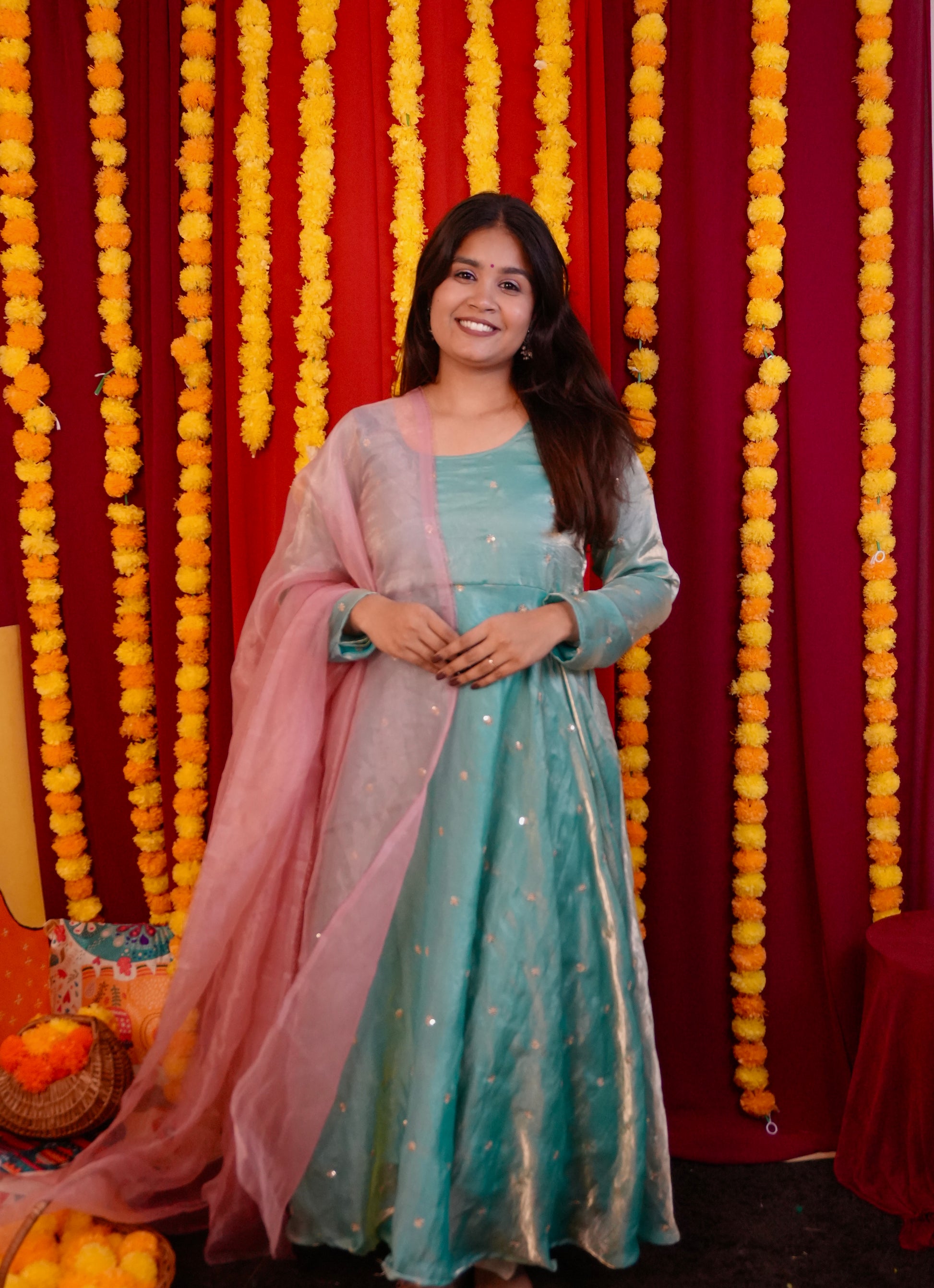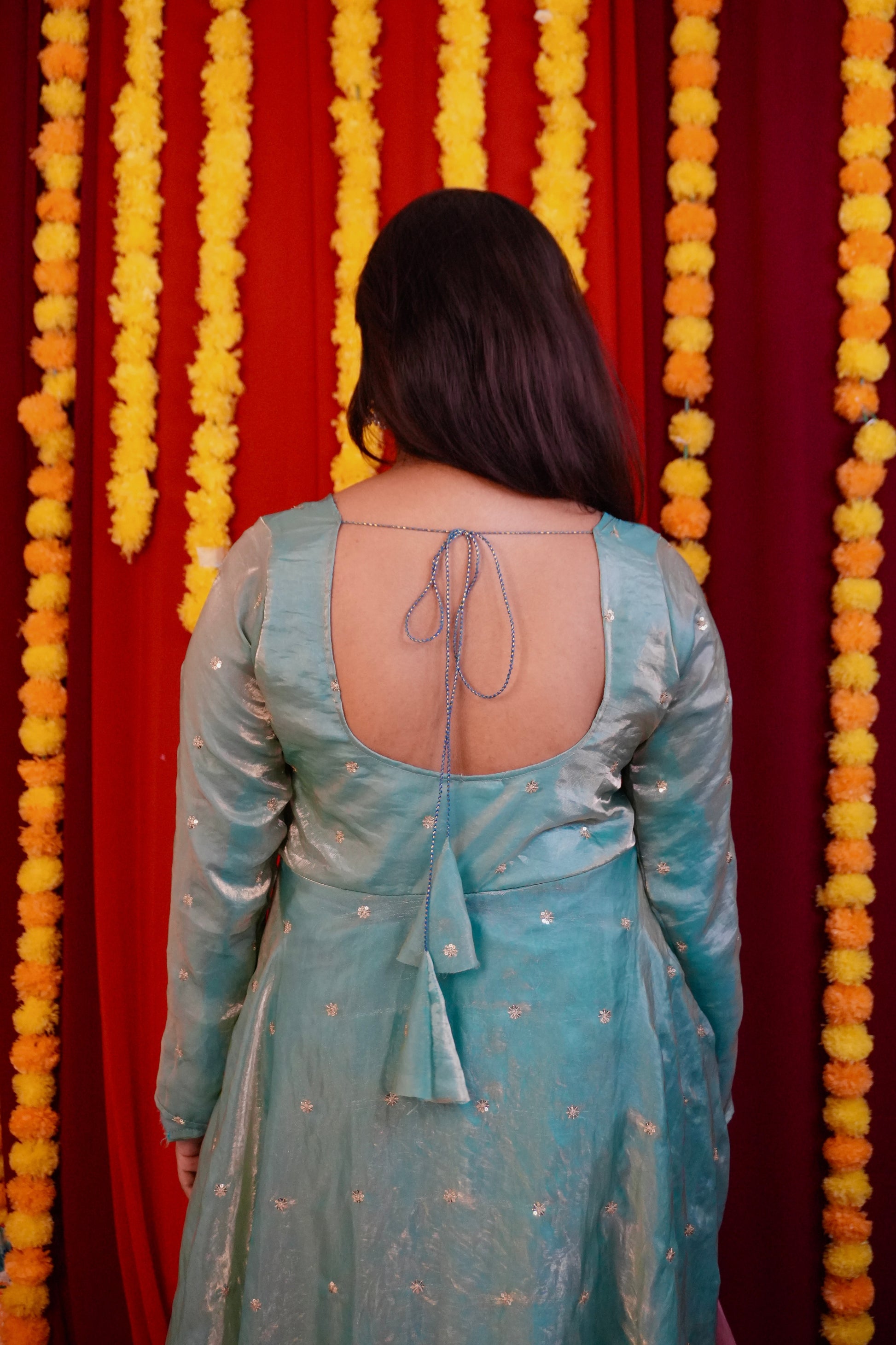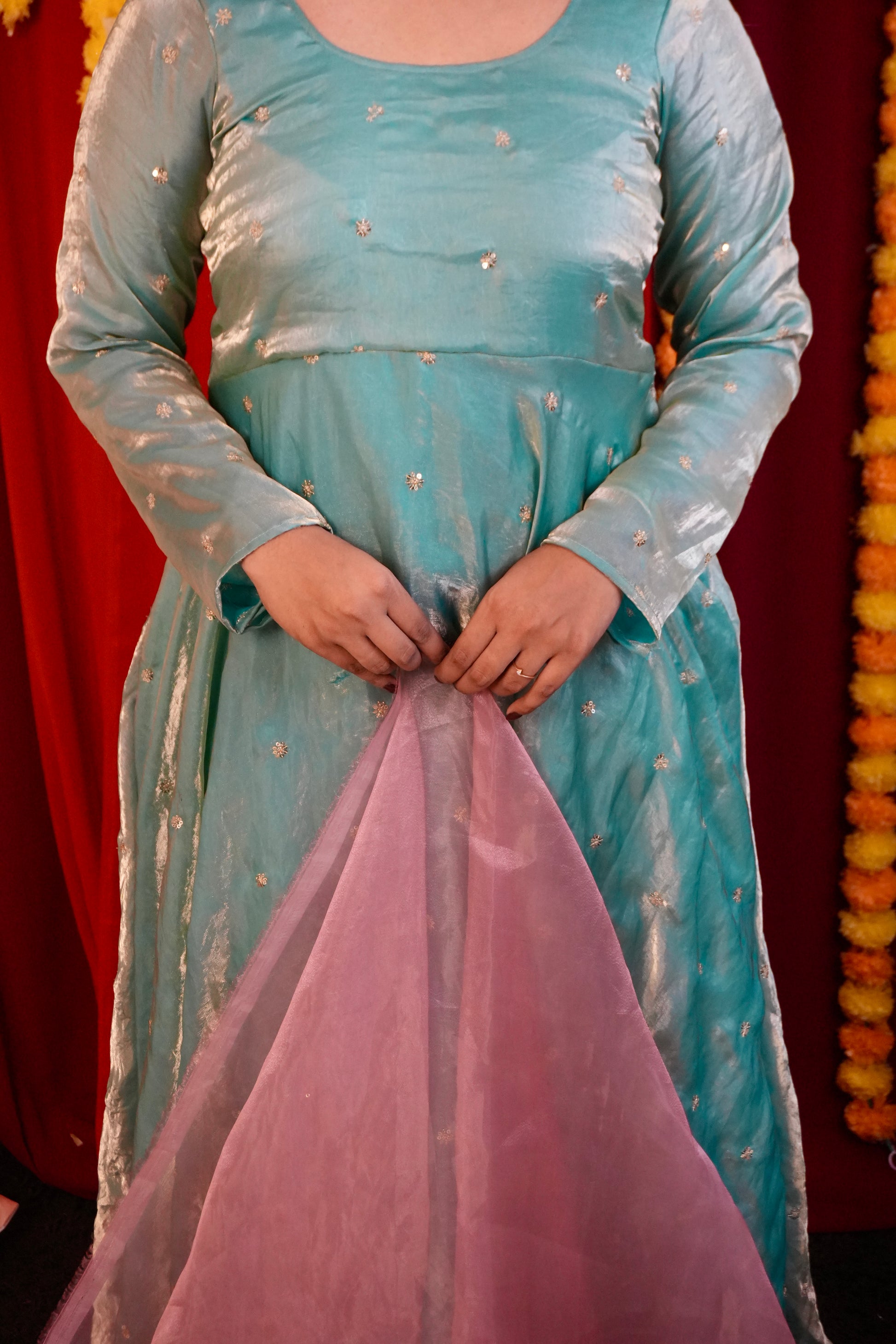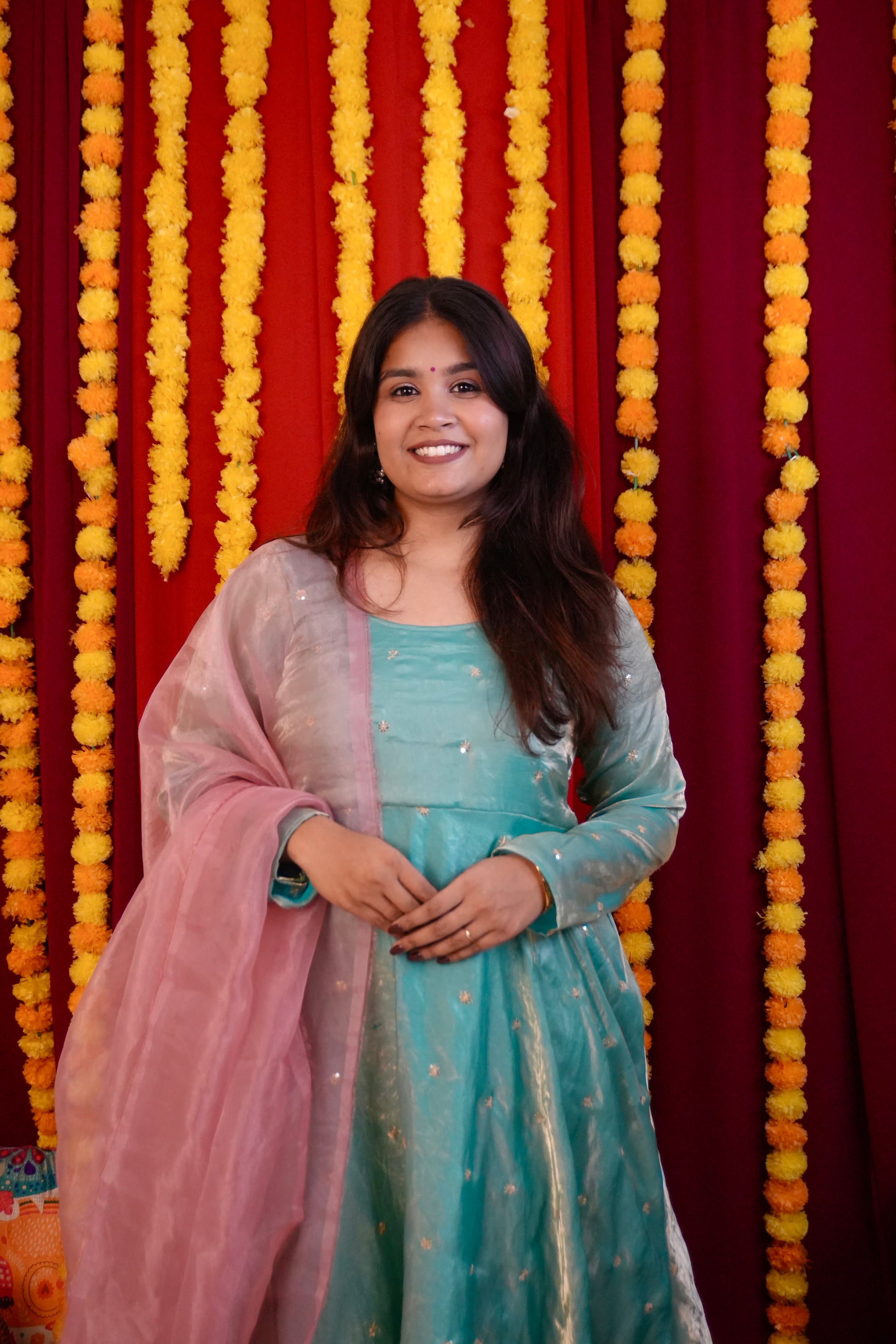 A flowy Anarkali in serene ocean blue, designed to move with grace and breathe with comfort.